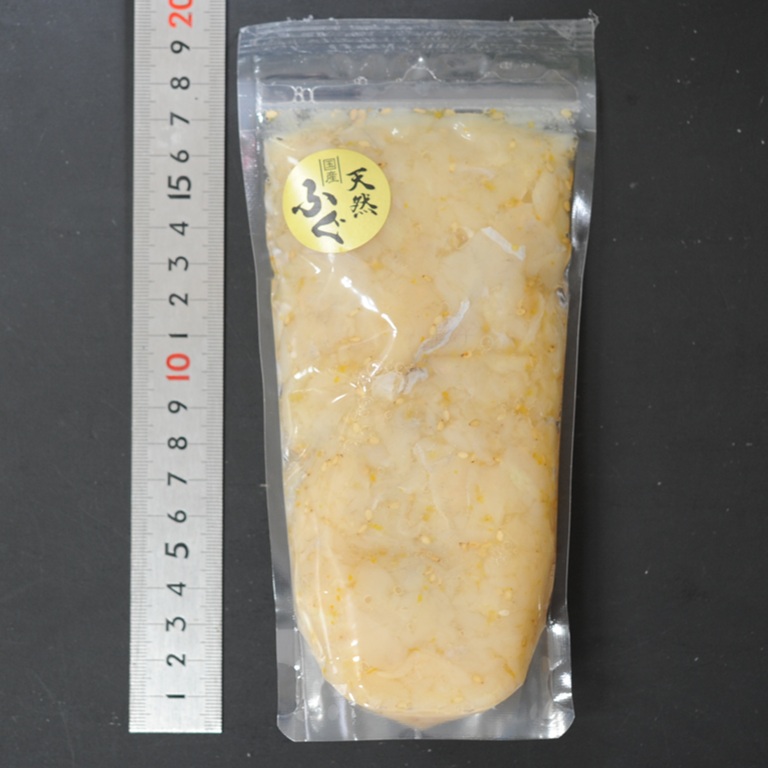 ゴマフグ(国産)、みりん、調味塩(食塩、芽かぶ)、ゆず、食塩、ハチミツ、ゴマ、液体風味調味料、唐辛子、昆布エキス