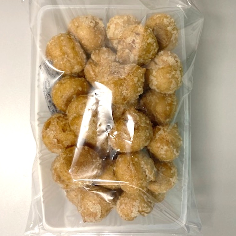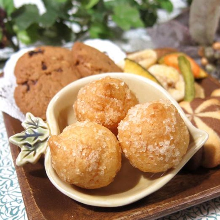 一口サイズのシュー皮に、マーガリン・砂糖をまぶして焼き、ラスク風に仕上げました。