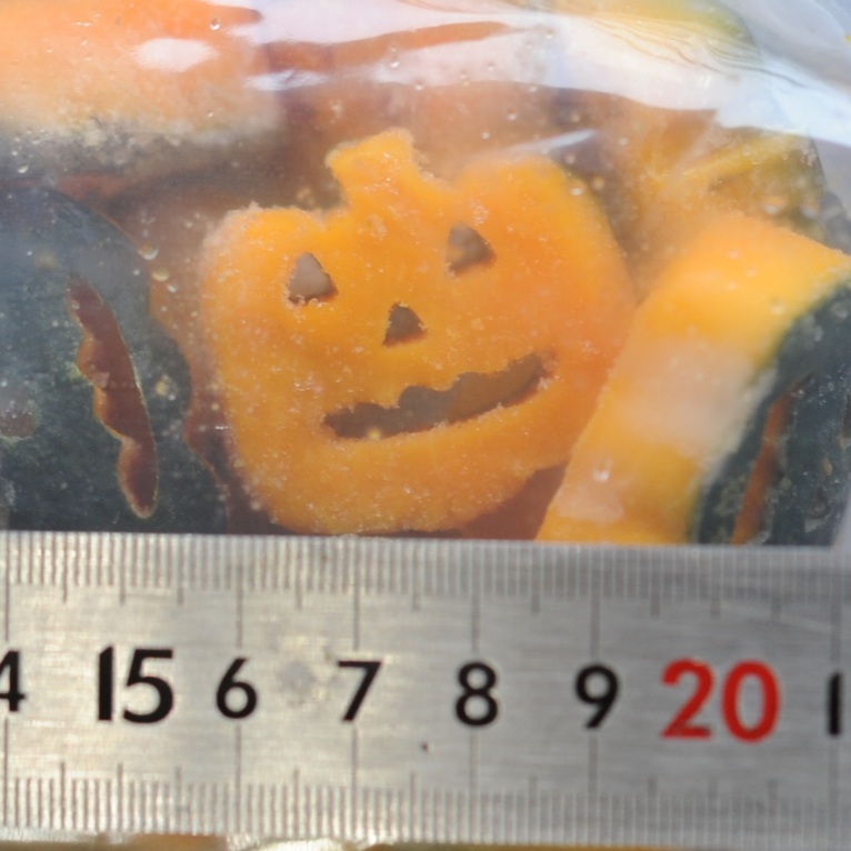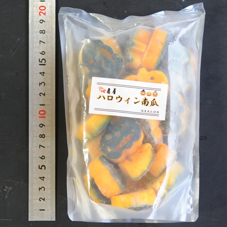 国産のエビス南瓜を、特殊技術でハロウィンの形に成形しました。