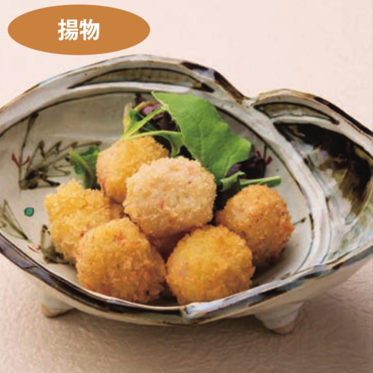 魚肉、でん粉、かに肉(ベニズワイガニ(境港産))、玉ねぎ、砂糖、食用油脂、カニエキス、食塩、卵白、エビエキス