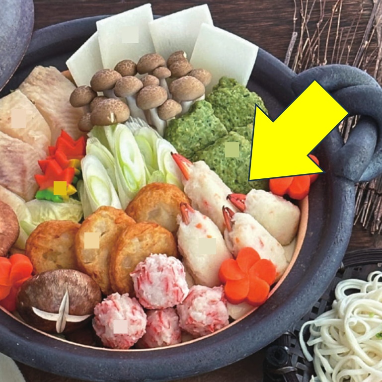 イトヨリすり身とカニ肉(カニ肉5%使用)を使用したしんじょうにカニ爪をつけました。