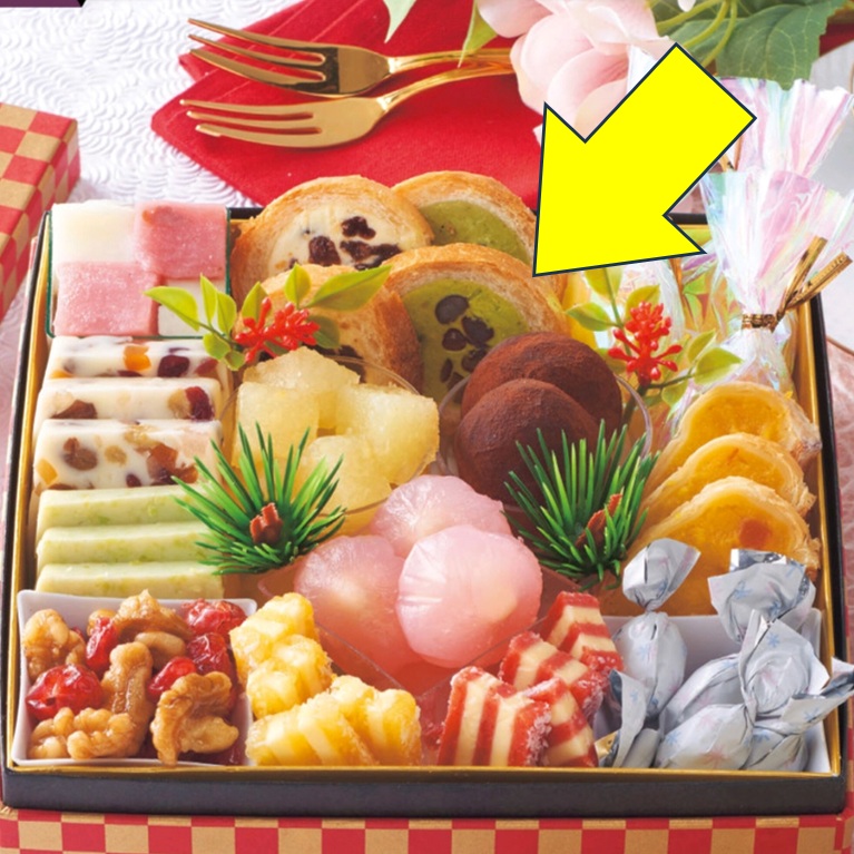 バター(国内製造)、大納言かのこ甘煮(国内製造)(砂糖、小麦)、パン(小麦粉、食塩、砂糖、ショートニング、ドライイースト、麦芽エキス)、抹茶加工品(抹茶、クロレラ粉末)/甘味料(ソルビトール)、乳化剤、ビタミンC