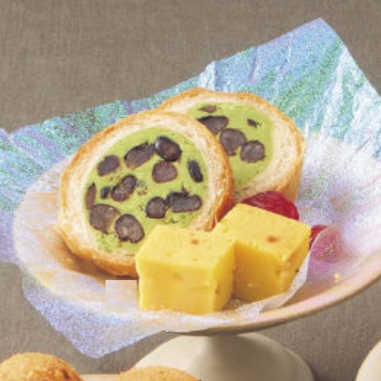 香ばしいフランスパンに抹茶あずきとバターを詰めた和風テイストな一品。