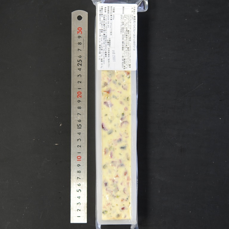 ナチュラルチーズ(オーストラリア製造)、ミックスフルーツ(干しぶどう、糖漬けドライクランベリー、糖漬けドライパパイヤ、糖漬けドライパインアップル)、ゼラチン、ワイン、乳等を主要原料とする食品、生クリーム、アーモンド、玉ねぎ、オリーブオイル、ピスタチオ、パッションフルーツピューレ、醸造酢、食塩、パセリ、胡椒