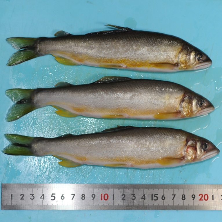 5種類のハーブエキスを食べさせることによって背脂をも極限にまで尾さえ(霜降りのような身質)、鮎本来のスイカ香りが味わえる、天然鮎に優る味と香りを実現しました。