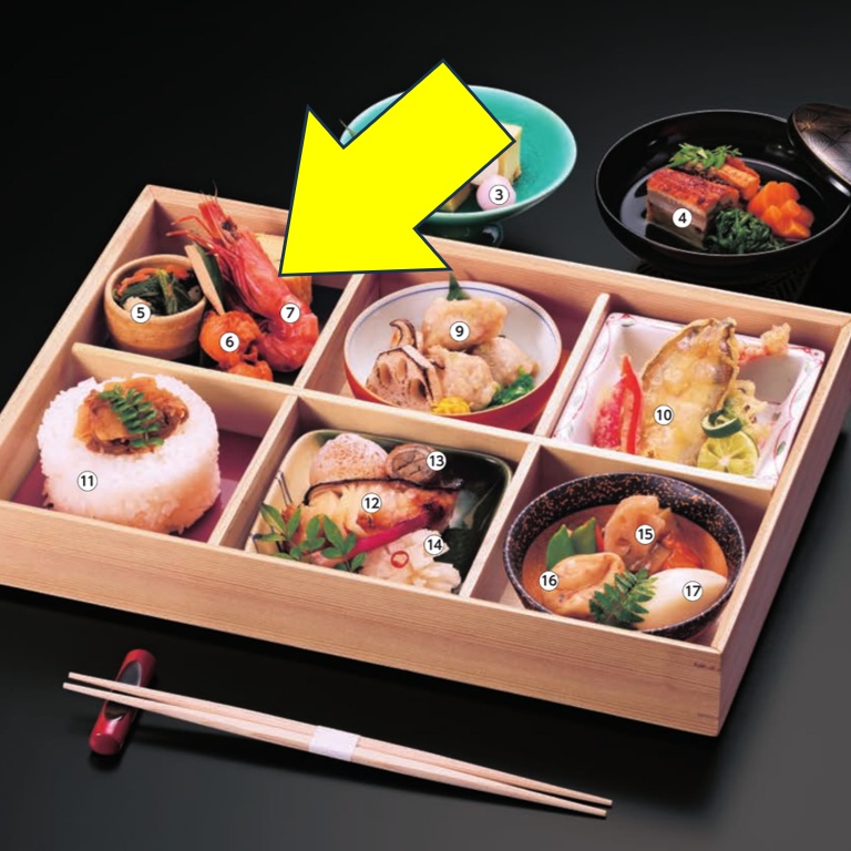 有頭海老(ベトナム産)、清酒、みりん、醤油、鰹昆布だし、鰹節エキス、砂糖、食塩/グリシン、調味料(アミノ酸)、pH調整剤、(一部にえび・小麦・大豆を含む)