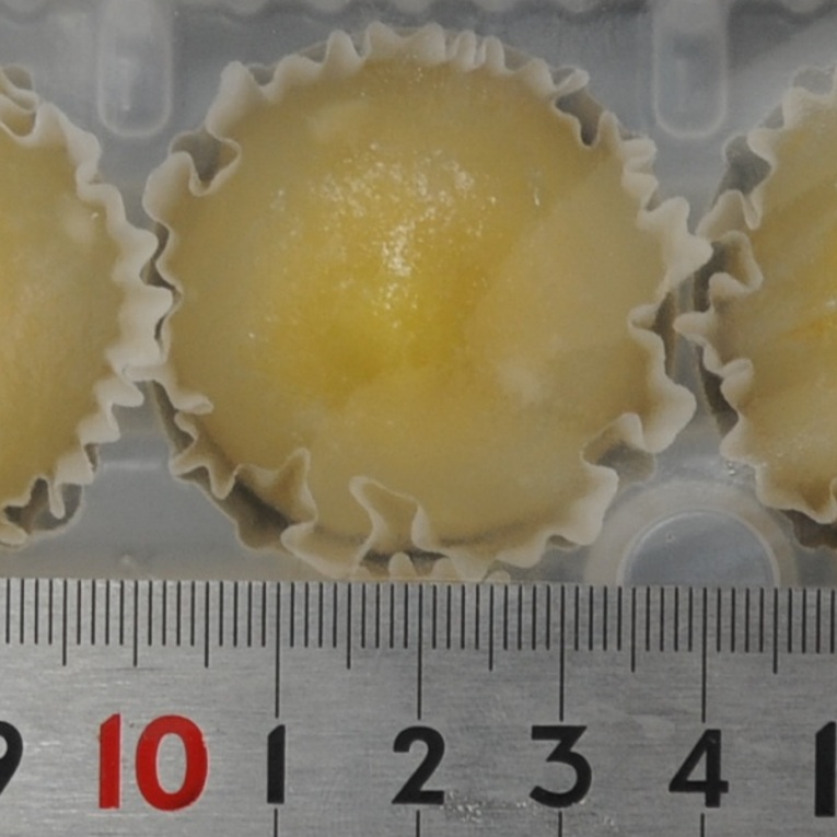 瀬戸内産のレモン果皮を練り込んだ生地の中に白あんが透けて見える美しい葛餅です。