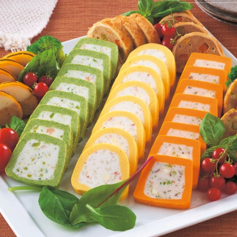 サーモンとチーズ、魚肉すり身の相性が良い色鮮やかなテリーヌです。