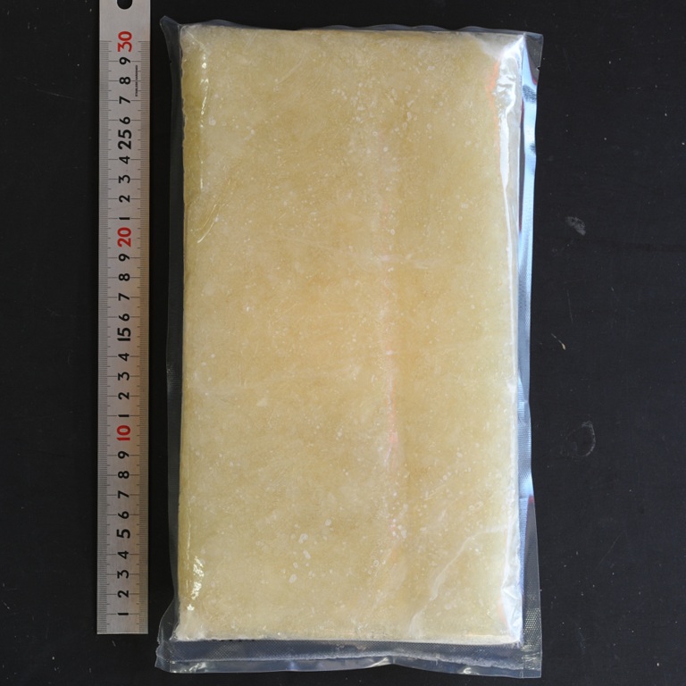 長さ4㎝~6㎝のヒレの繊維部分を50%、ユイチェンと呼ばれるヒレの内部のゼラチン部分を50%で混合した商品です。