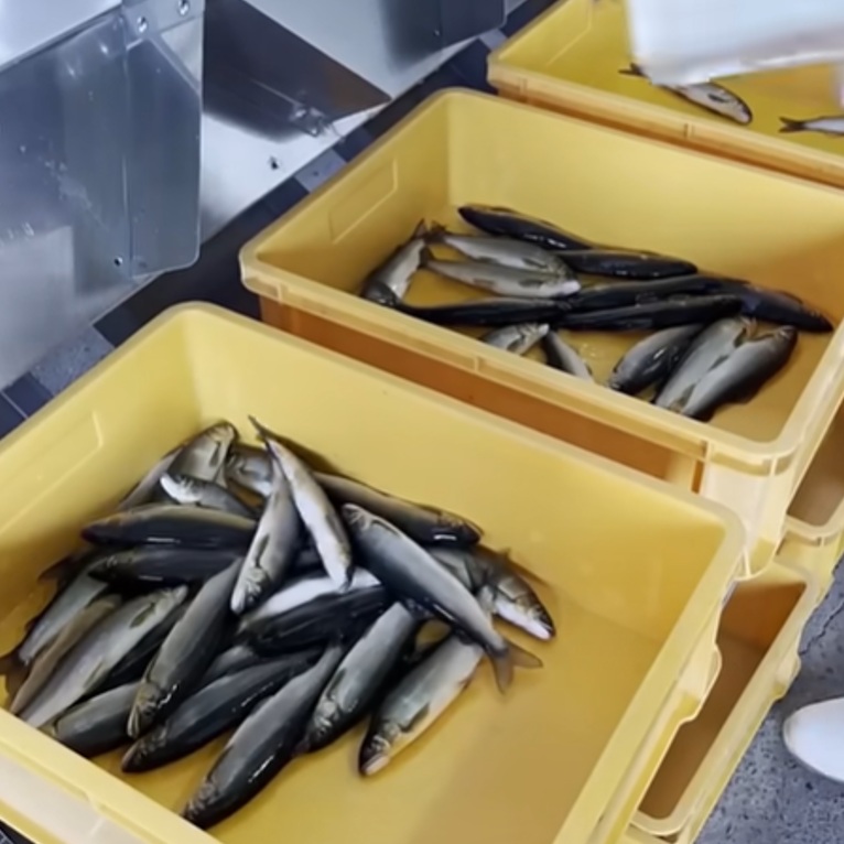 養鮎場から「身質は1級品と遜色無い」と聞きましたが、特に卵でパンパンに膨れた子持鮎は身割れなど心配なため、お客様(鮎加工屋・元養鮎業)にもお願いして検証をしました。