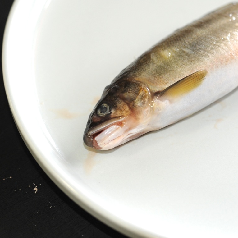 養鮎場から「身質は1級品と遜色無い」と聞きましたが、特に卵でパンパンに膨れた子持鮎は身割れなど心配なため、お客様(鮎加工屋・元養鮎業)にもお願いして検証をしました。
