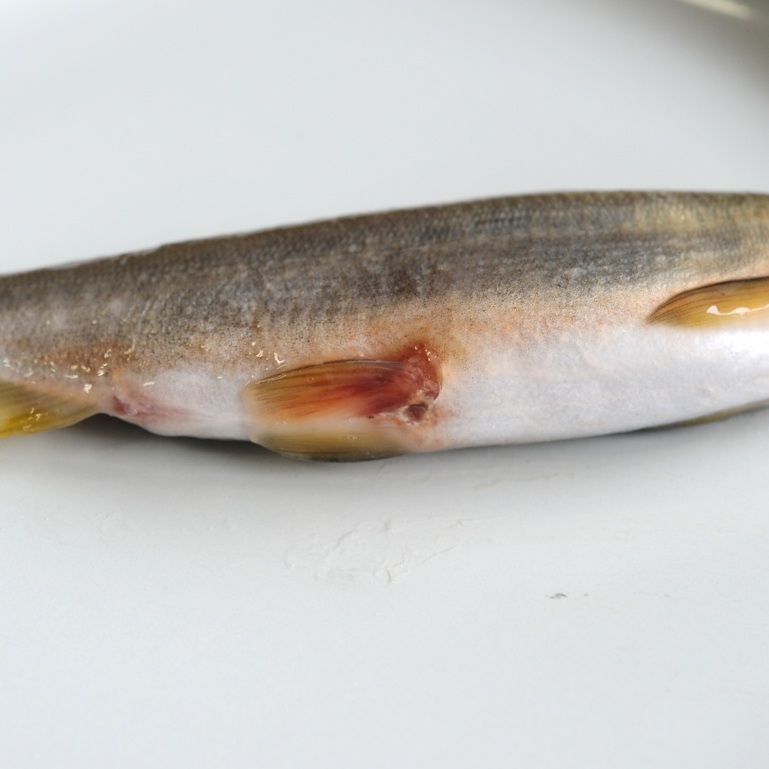 1.5級品は身重になった鮎が池底で擦った傷で若干赤くなっています。(※写真掲載)