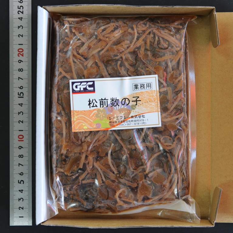 塩かずの子(ニシンの卵(オランダ又はドイツ又はカナダ)、食塩)、発酵調味料、還元水飴、しょう油、するめ、砂糖、昆布、かつお節エキス、昆布抽出物、食塩、醸造酢、唐辛子