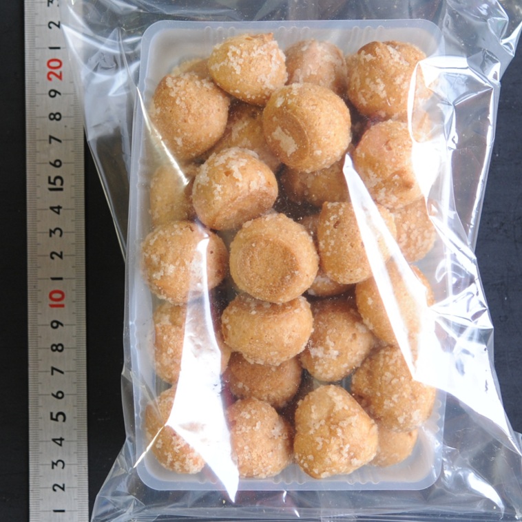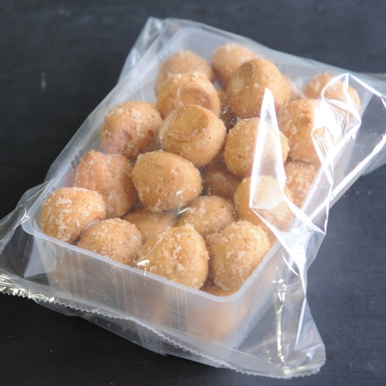 一口サイズのシュー皮に、マーガリン・砂糖をまぶして焼き、ラスク風に仕上げました。