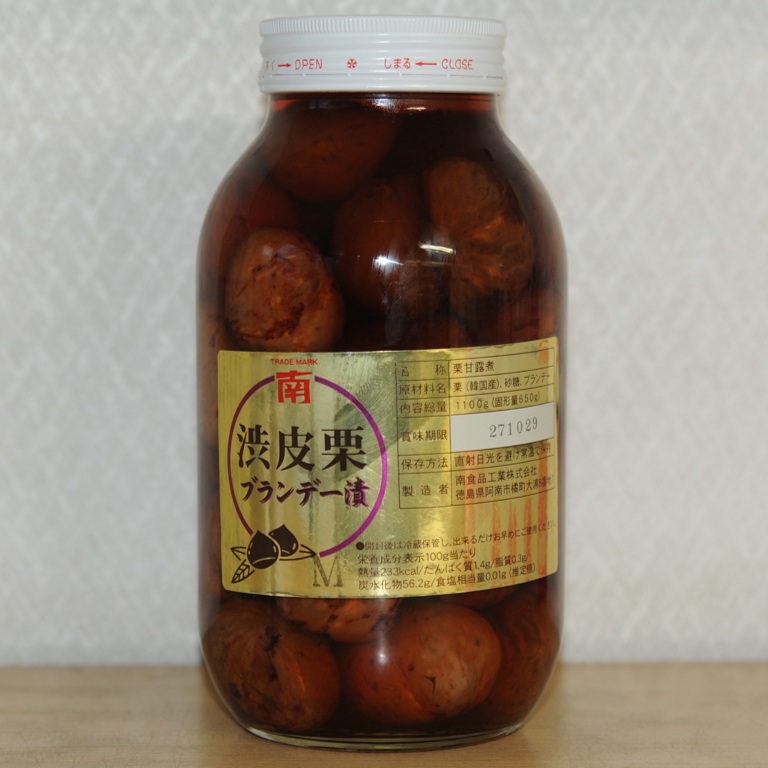 渋皮栗ブランデー漬 900g(46-40個)x1瓶 子供もOK おせち 前菜八寸 あしらい 栗甘露煮 マロンシロップ漬