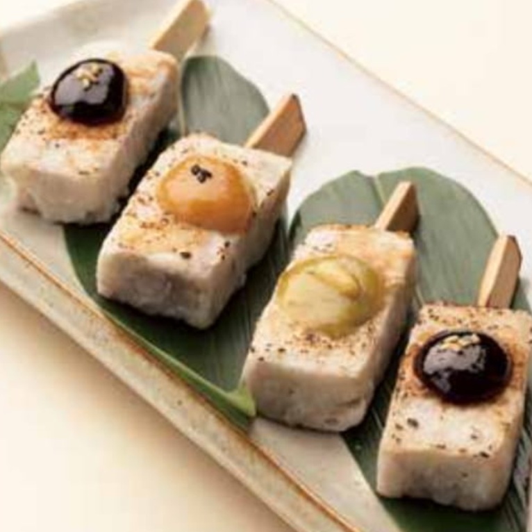 ペーストにした里芋を田楽風に直方体に成型し、焼き目をいれてあります。