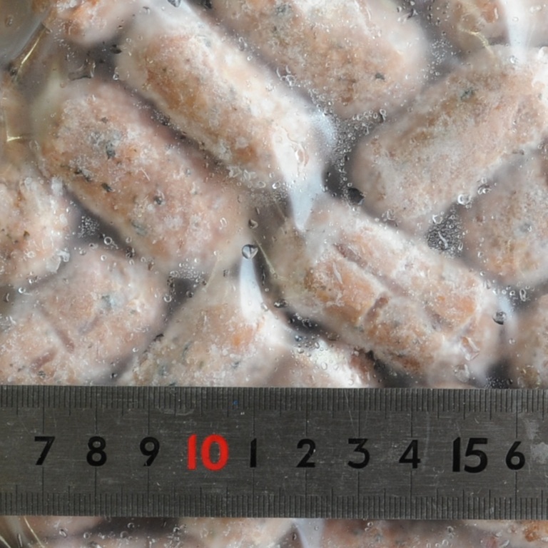 豚肉(スペイン、フランス)、鶏肉、プロセスチーズ、豚脂肪、パン粉、牛肉、水飴、ジェノバペースト、バジル、フライドオニオン、沖アミペースト、酵母エキス/安定剤(加工デンプン、増粘多糖類)、トレハロース、乳化剤、調味料(アミノ酸等)、リン酸塩(Na)、酸味料、酸化防止剤(V.C)、発色剤(硝酸K、亜硝酸Na)、香辛料抽出物、くん液、カロチノイド色素、香料、セルロース、(一部に卵・乳成分・小麦・牛肉・ゼ