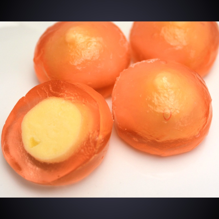 りんごの角切り入りカスタードクリームをりんごの葛餅で包みました。