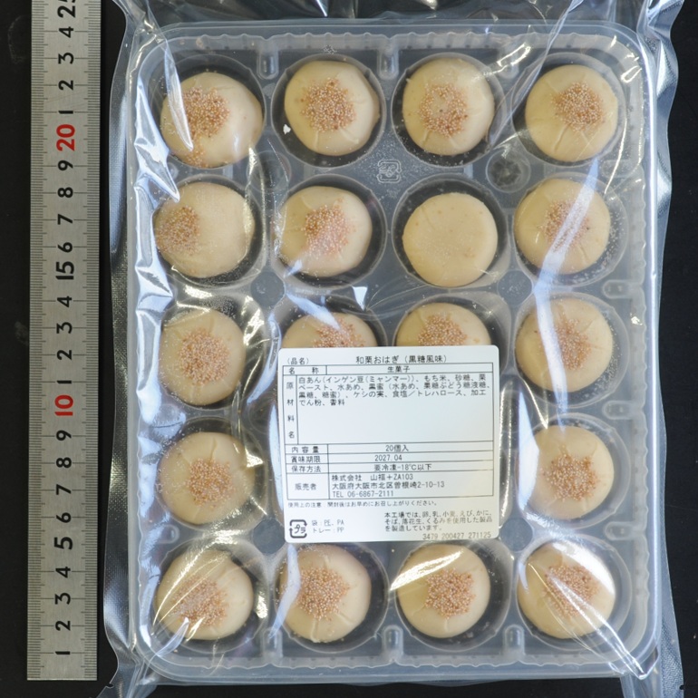 白あん(インゲン豆(ミャンマー))、もち米、砂糖、栗ペースト、水あめ、黒蜜(水あめ、果糖ぶどう糖液糖、黒糖、糖蜜)、ケシの実、食塩/トレハロース、加工でん粉、香料