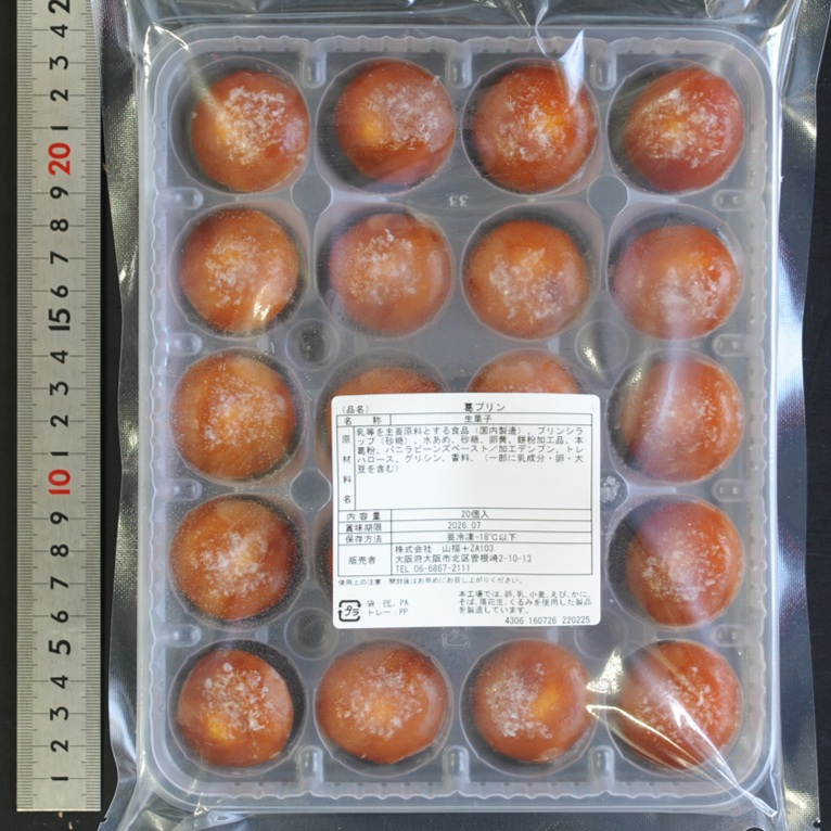 乳等を主要原料とする食品(国内製造)、プリンシラップ(砂糖)、水あめ、砂糖、卵黄、もち米加工品、本くず粉、バニラビーンズペースト/加工でん粉、トレハロース、グリシン、増粘多糖類、乳化剤、香料、(一部に乳成分·卵·大豆を含む)