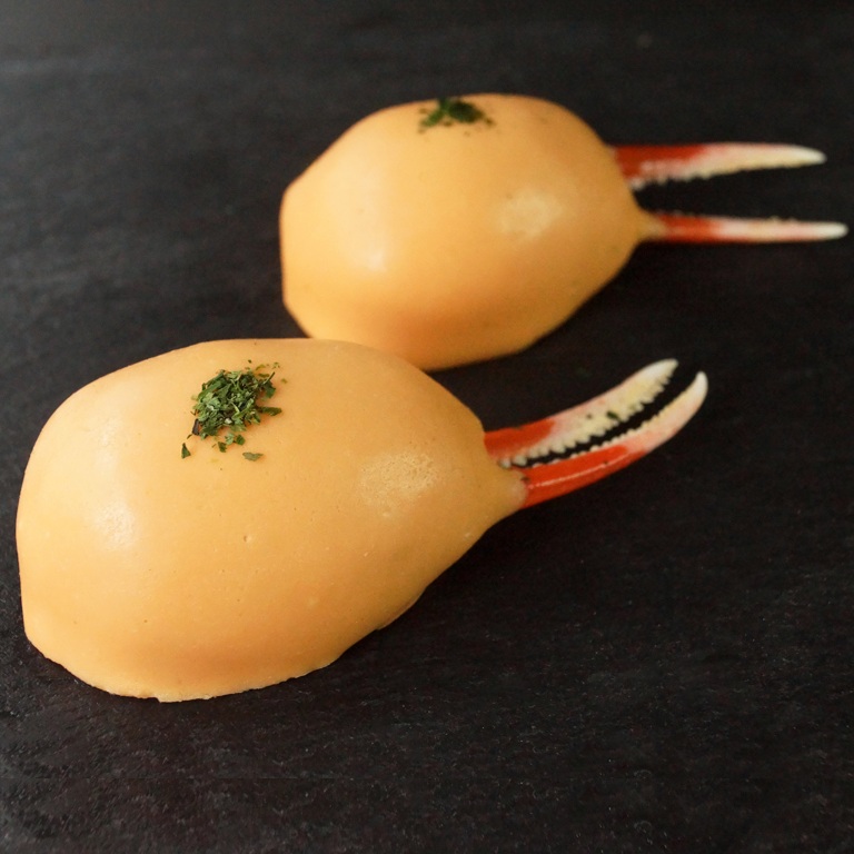 カニ爪に蟹身入りのすり身をつけ、マヨネーズとケチャップを混ぜたオーロラソースをつけた見た目も華やかな商品です。