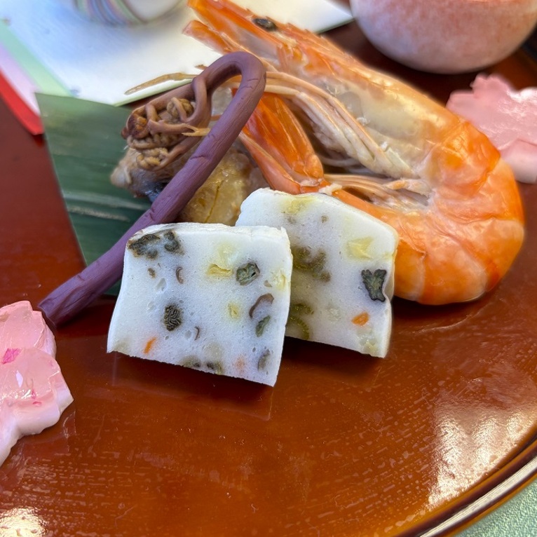 魚肉すり身[魚肉(いとよりだい)、でん粉、植物油、砂糖、食塩](国内製造)、卵白、油脂加工品(植物油脂、食塩、その他)、たけのこ水煮、山菜しょうゆ漬け(いもづる、わらび、細竹、木耳、ぜんまい、食塩、アミノ酸液、しょうゆ)、にんじん、みりん風調味料、なたね油、昆布だし(昆布、食塩、砂糖)、調味液(水あめ、アミノ酸液、食塩、その他)/加工でんぷん、調味料(アミノ酸等)、酒精、増粘多糖類、pH調整剤、グ