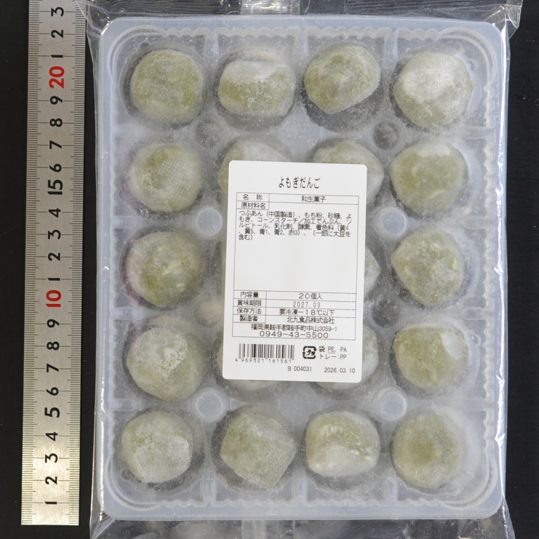 つぶあん(中国製造)、もち米粉、砂糖、コ ーンスターチ、よもぎ/加工でんぷん、ソル ビートル、乳化剤、酵素、着色料(黄4、黄 5、青1、青2、赤3)、(一部に大豆を含 む)