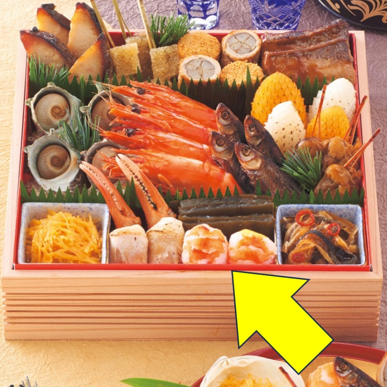 加糖卵黄、えび、砂糖、醸造酢、ゼラチン、食塩、昆布エキス/加工デンプン、pH調整剤、(一部に小麦・えび・卵・ゼラチンを含む)