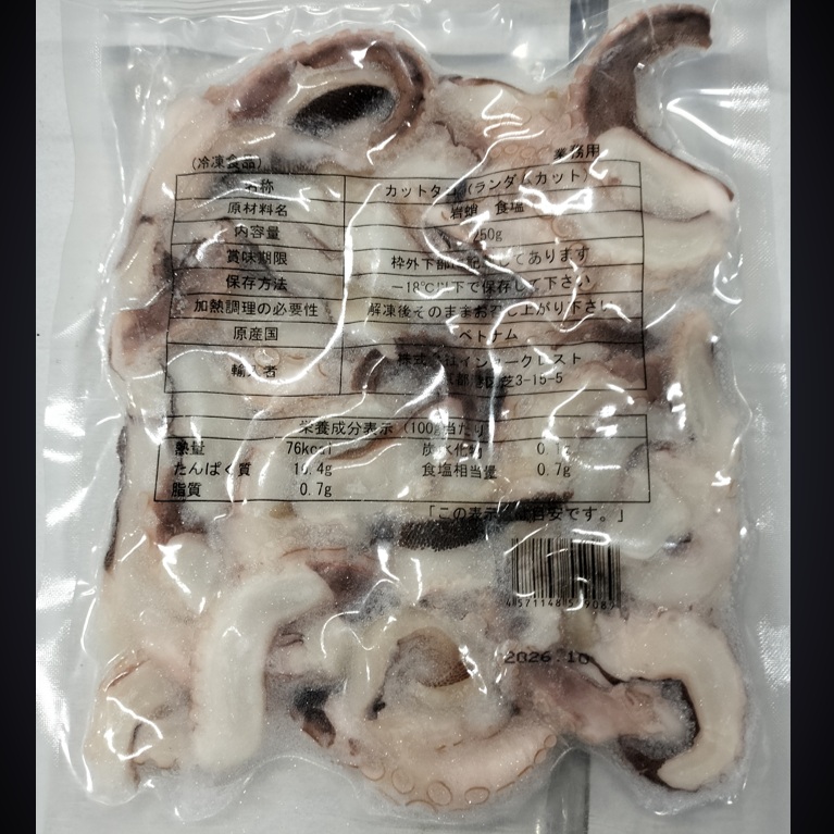 ランダムカットしてますが、盛り付けたときにタコの存在感を出す為、カットする長さが4㎝以下にならないように配慮しております。
